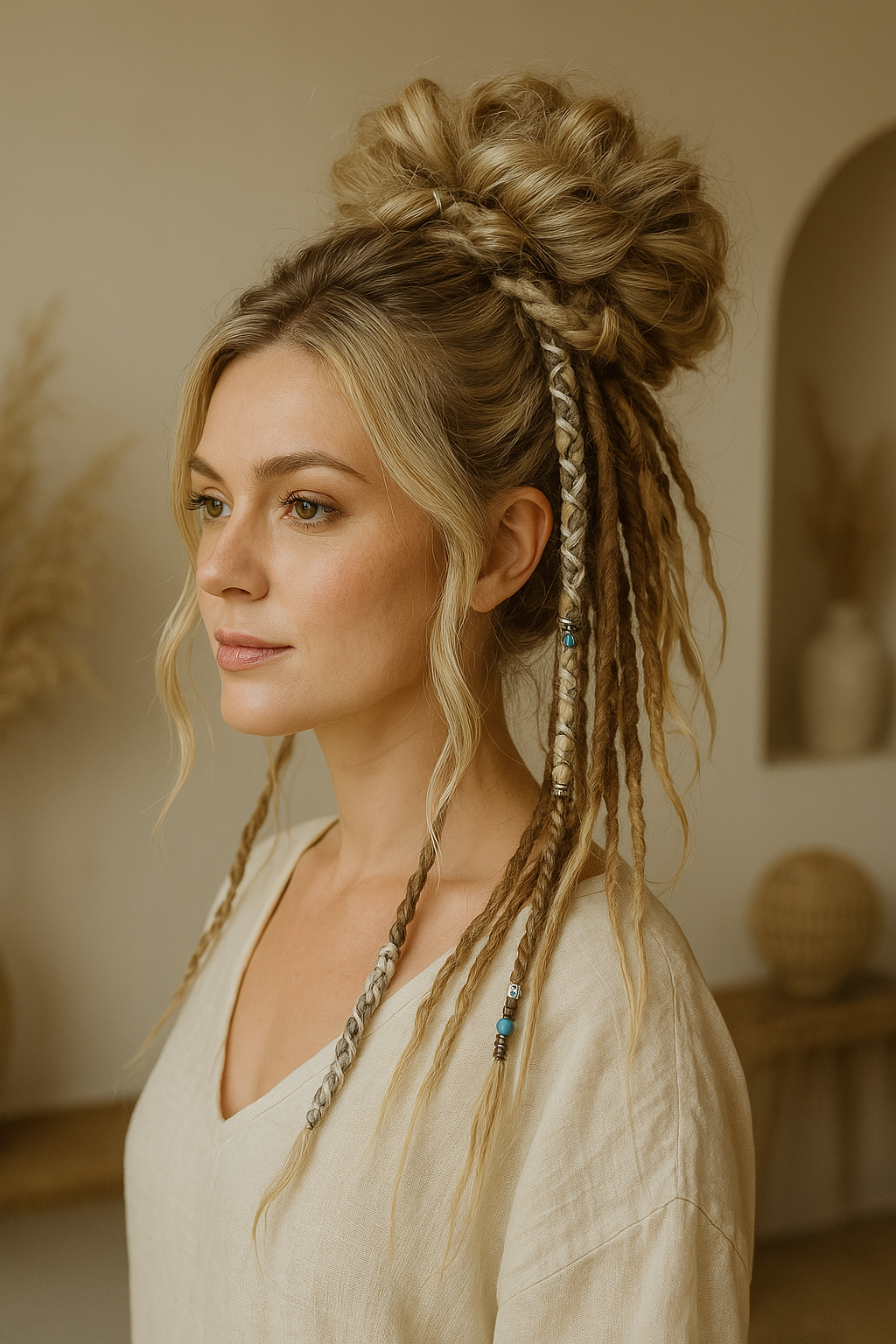 Dreadlocks | Messy bun | Chignon-Postiche Murmures de Sable Doré 🏝️