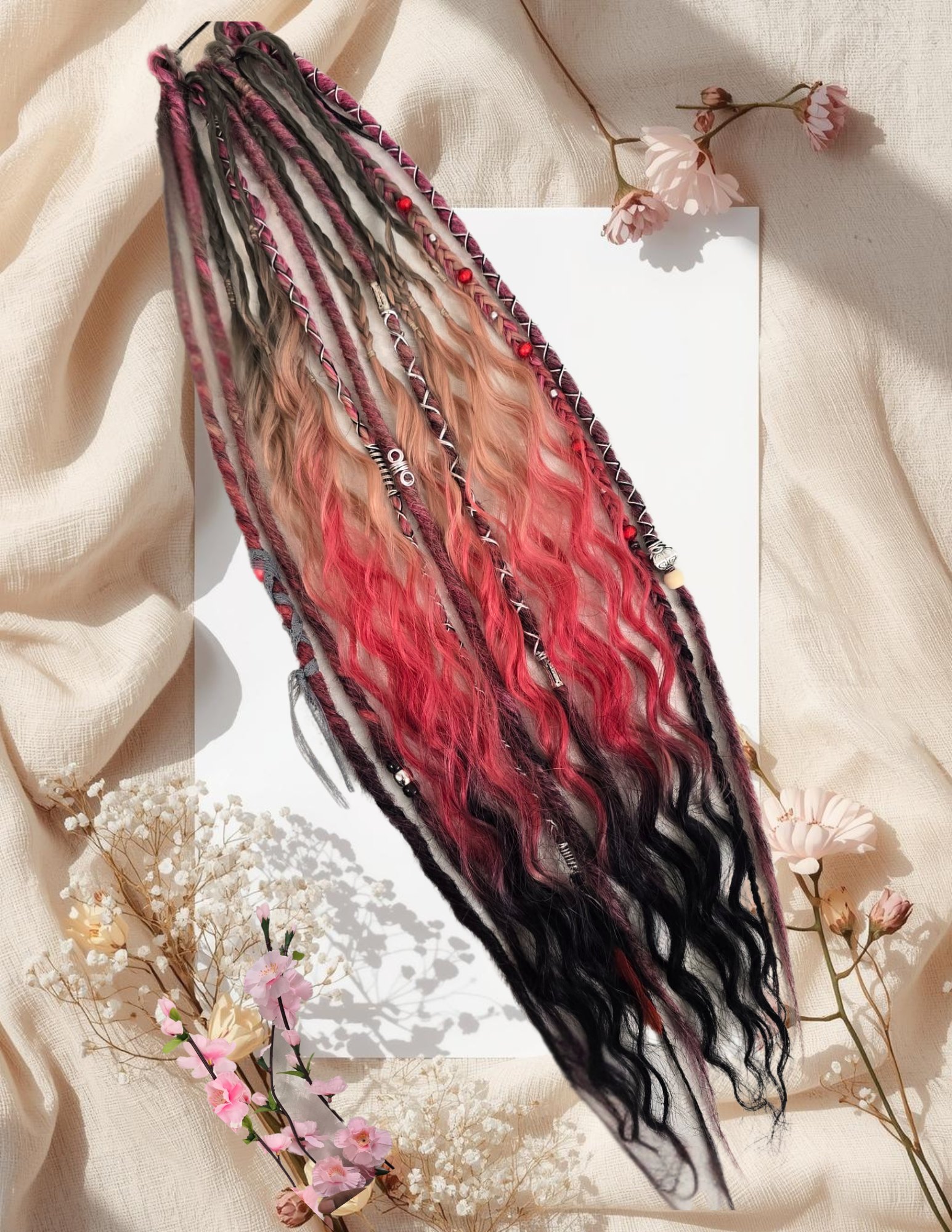 Style : Look "Boho-Goth" ou floral urbain, alternant dreads texturées et ondulations vaporeuses.