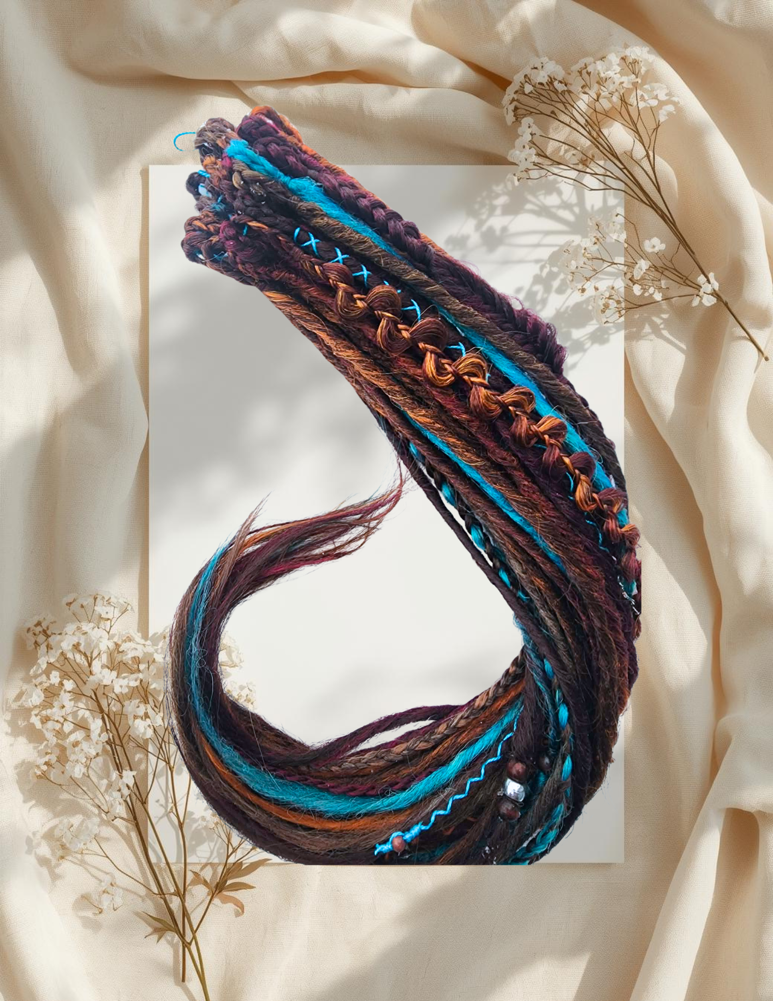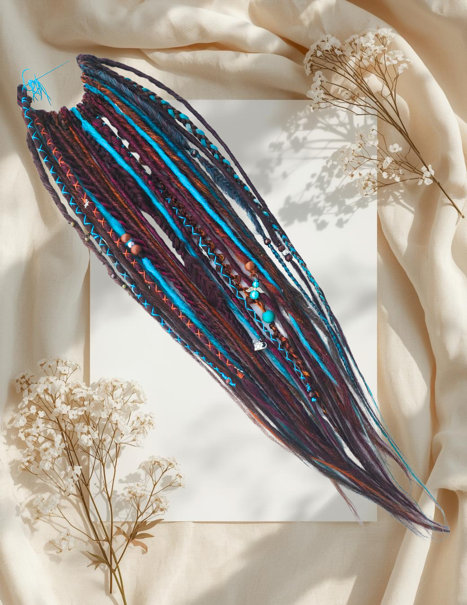 Fixation : Dreadlocks et tresses préfabriquées avec boucles aux extrémités pour l'installation par tressage.